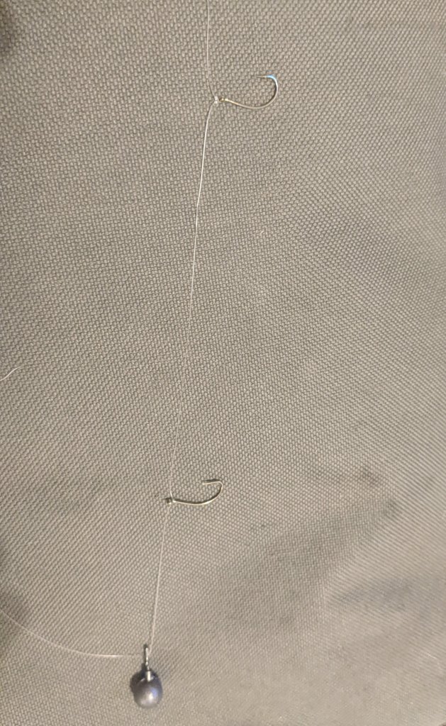 Ovbioulsly this can be fished as a standard single hook dropshot. I tend to use two hooks at the start of the session (if i’m not using a sabiki ) then switch to one hook once I have found the fish.