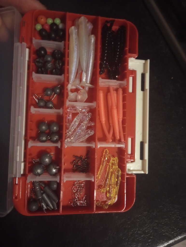 In reality this is all I need to catch decent bass. I carry the bigger box to add variety to my fishing.